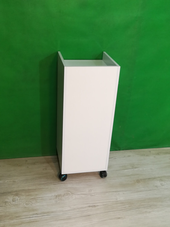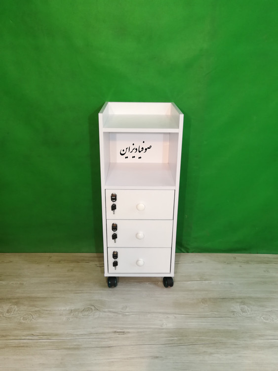 ترولی سه کشو که دارای سه قفل مجزا می باشد و چرخ آن ژله ای نشکن بوده و پشت کار از ورق 16 میلیمتری استفاده گردیده است که باعث استحکام کار می شود . جنس ورق کار از لترون روکش ملامینه ضد خش می باشد .